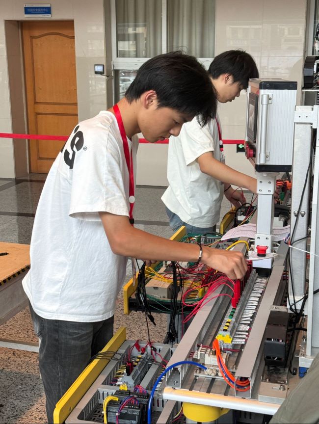以赛促教,提升职业教育质量。赛前,教师针对关键技术环节进行专题讲解;赛中,教师则以真实工程任务为载体,推动学生在团队协作中完成从方案设计、装配调试到故障诊断的全流程实践;赛后,教师依据学生的表现和作品评估结果,及时进行教学反馈和课程改进,实现了教学内容与行业需求的精准对接,显著提升了人才培养的质量和效果。