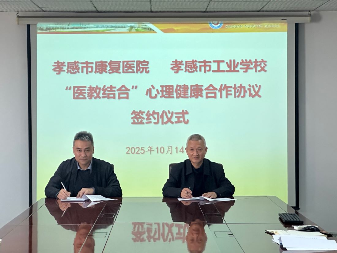 为进一步加强学生心理健康教育工作,构建全方位心理健康服务体系,10月14日上午,我校与孝感市康复医院正式签订 “医教结合” 心理健康合作协议。我校分管副校长左德安、学工处主任李良敏、团委书记杨勋出席此次签约仪式。