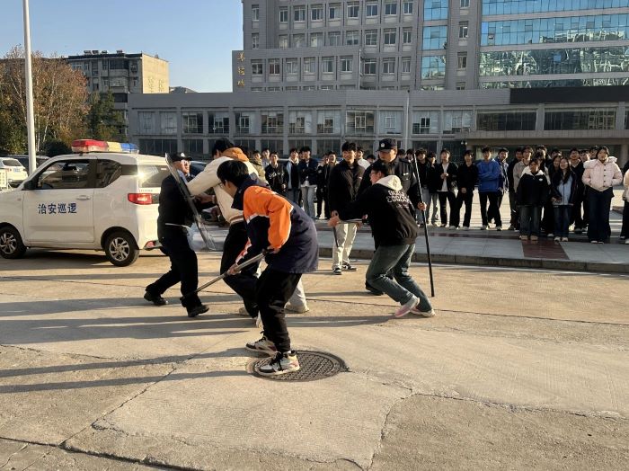 为增强学生自我保护意识,民警还现场指导学生进行互动体验,模拟在紧急情况下的基本防护与疏散方法,同学们积极参与,演练气氛严肃而活跃。