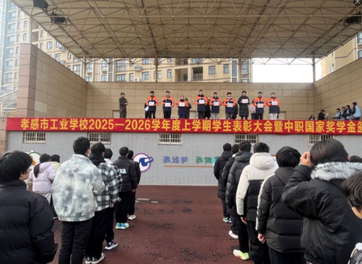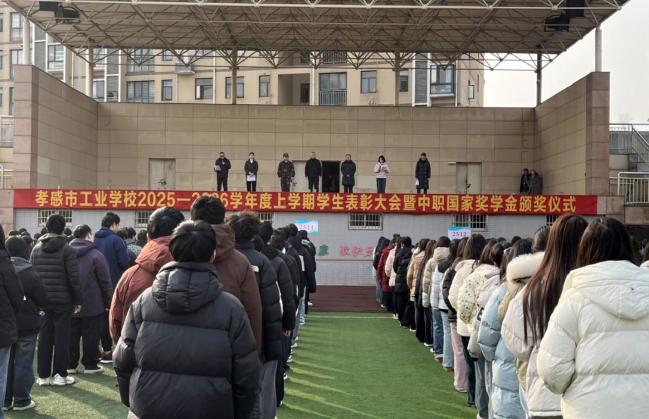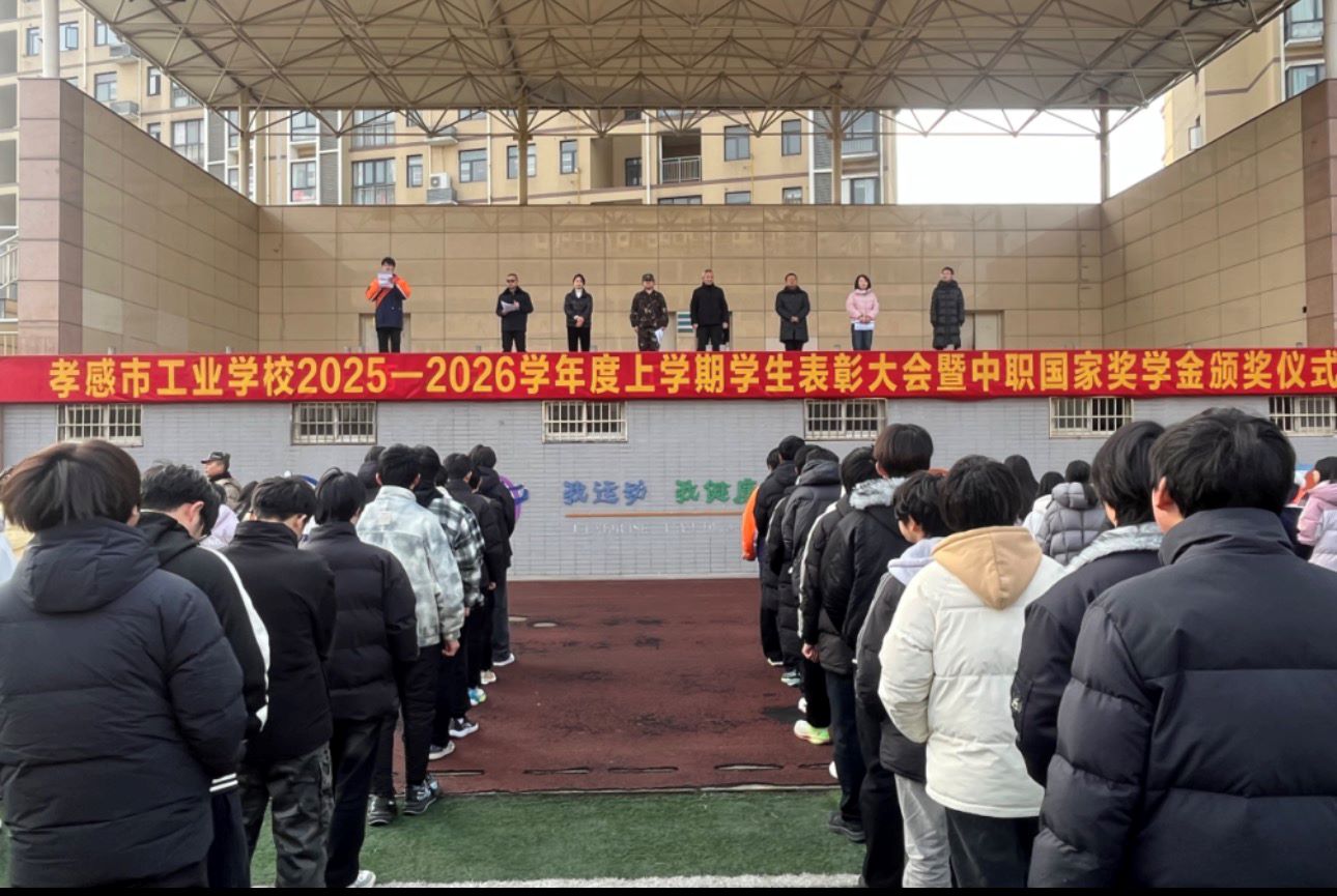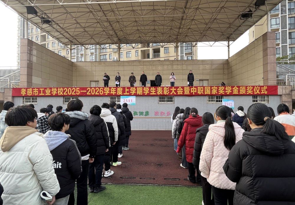 冬日暖阳洒满校园,2026年1月28日,我校2025-2026学年度上学期学生表彰大会暨2025年中职国家奖学金颁奖仪式在运动场隆重举行。学校分管领导左校长、学工处团委相关负责人、全体班主任及2023、2024、2025级学生参加。本次活动由学工处李良敏主任主持。
